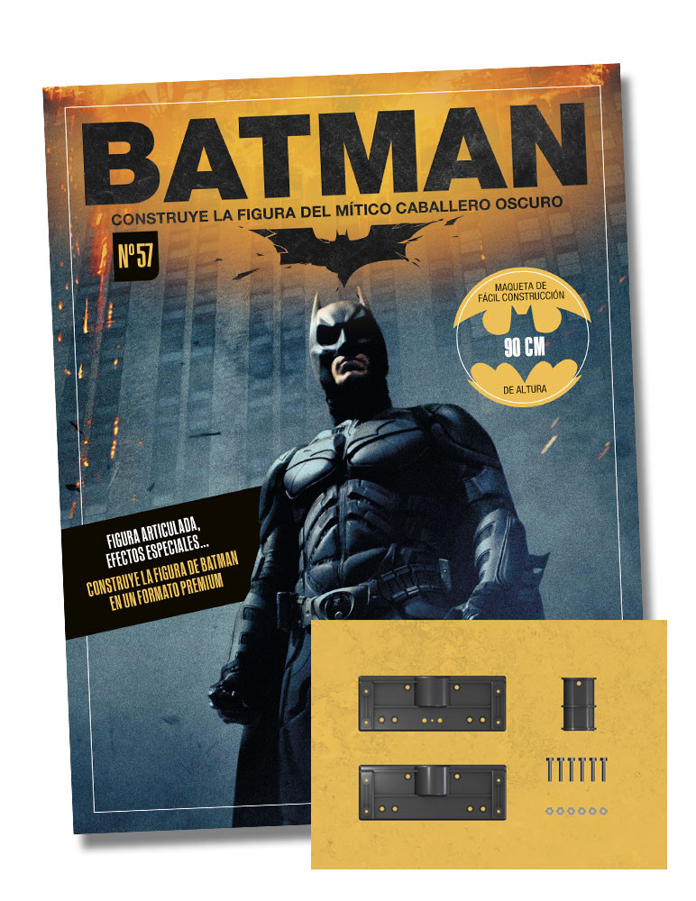 Construye por primera vez la figura de Batman, el Caballero Oscuro, con la réplica exacta del traje que aparece en la película The Dark Knight, y adéntrate en el Universo del Superhéroe de DC.