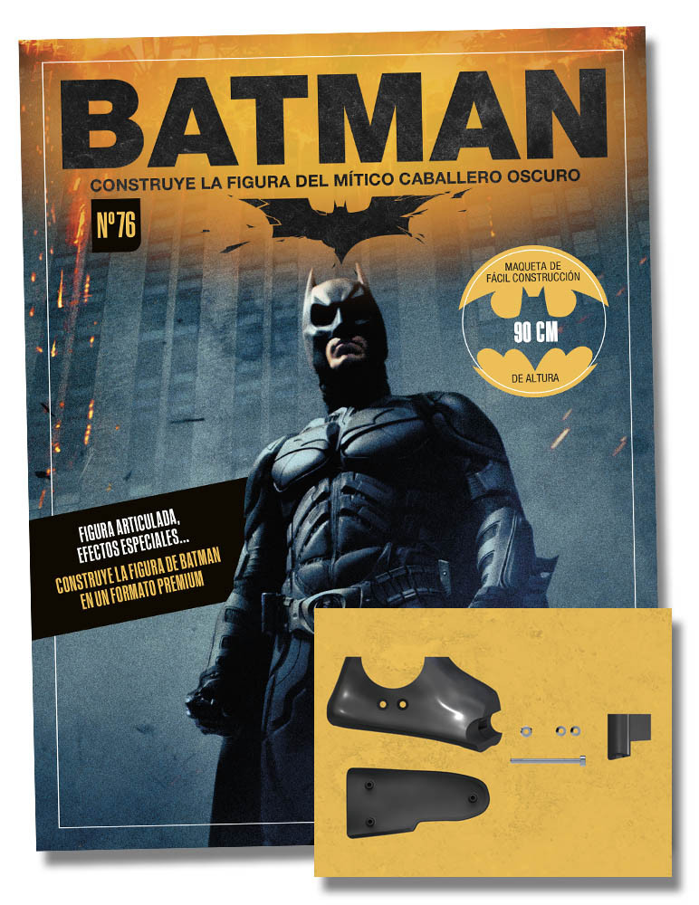 En este fascículo, aprende más sobre la trilogía de Christopher Nolan, El Caballero Oscuro. Además, consigue la parte trasera del pie derecho.