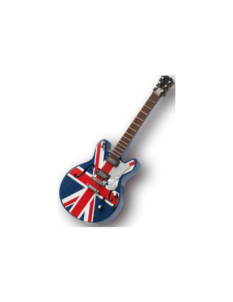 Guitarra miniatura de 25 cm. Noel Gallagher ex integrante de Oasis es el referente de esta guitarra porque tocaba con una idéntica en sus presentaciones. El britpop es un movimiento del rock alternativo que nació en los 90's con la aparición de bandas influenciadas por grupos de las décadas de los 60's y 70's, como los Beatles o The Kinks.